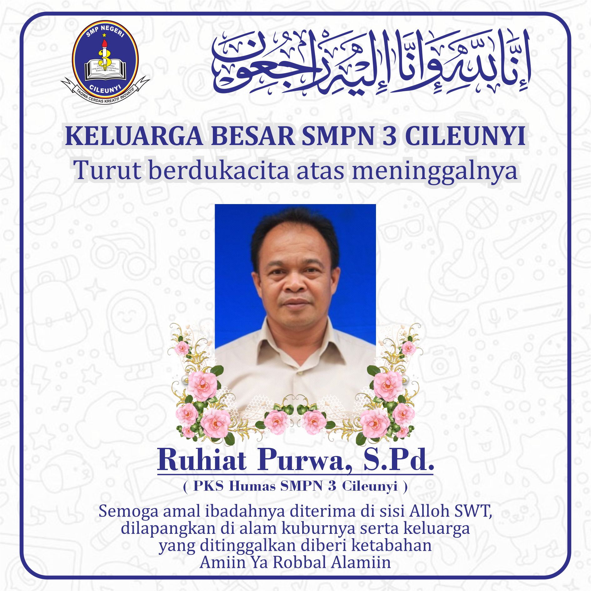 Dari hati yang paling dalam, kami Keluarga Besar SMPN 3 CILEUNYI turut berduka cita atas meninggalnya almarhum